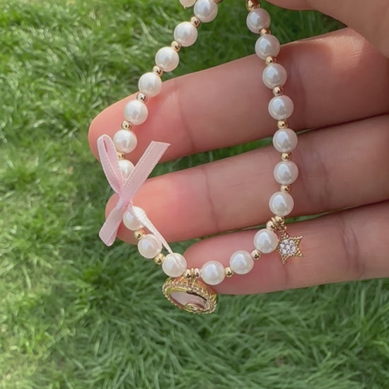 Elegant pearl bracelet featuring a delicate star charm and lustrous dream pearls. Each pearl is carefully selected for its natural beauty and soft iridescence, creating a timeless piece perfect for everyday wear or special occasions. The star pendant symbolizes hope and wonder, making it an ideal gift for dreamers and believers. Adjustable design ensures a comfortable fit for all wrist sizes. Crafted with attention to detail, this bracelet combines classic sophistication with modern charm. A versatile accessory that complements any style and adds a touch of celestial elegance to your jewelry collection.